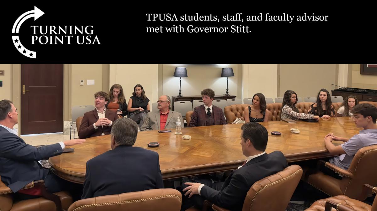 TPUSA SHOWED UP IN FORCE! They Posed for a photo with former U.S. Attorney General John Ashcroft | | TPUSA students at O.U. orchestrated what Governor Stitt called the largest political rally in the history of the state. A few students were on hand Tuesday evening to allow us to remember October 16th when these students filled the Lloyd Noble arena with 10,000 to hear Christ proclaimed as Lord and King!